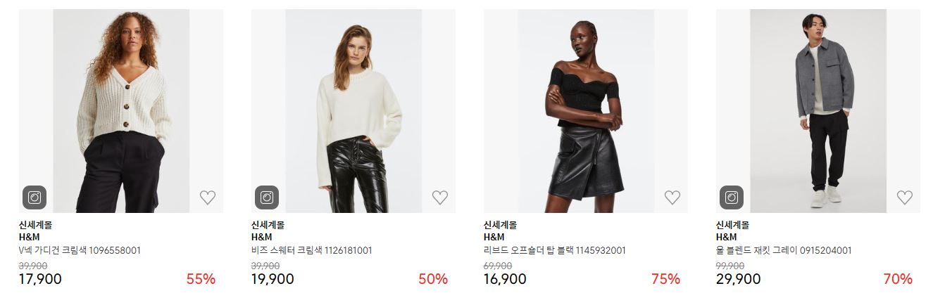 H&M 다양한 제품을 할인 판매하네요.
