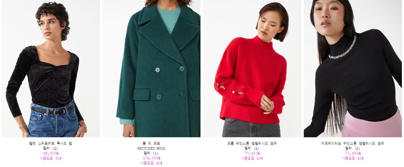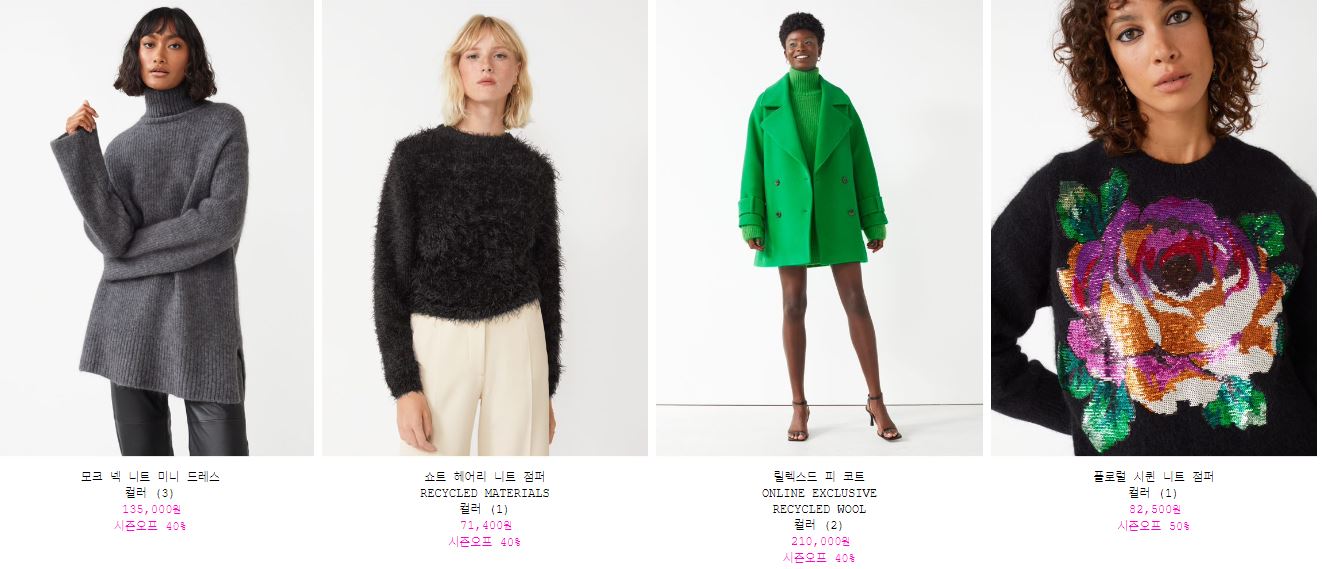 할인 품목 : 코트, 점퍼, 니트 등
