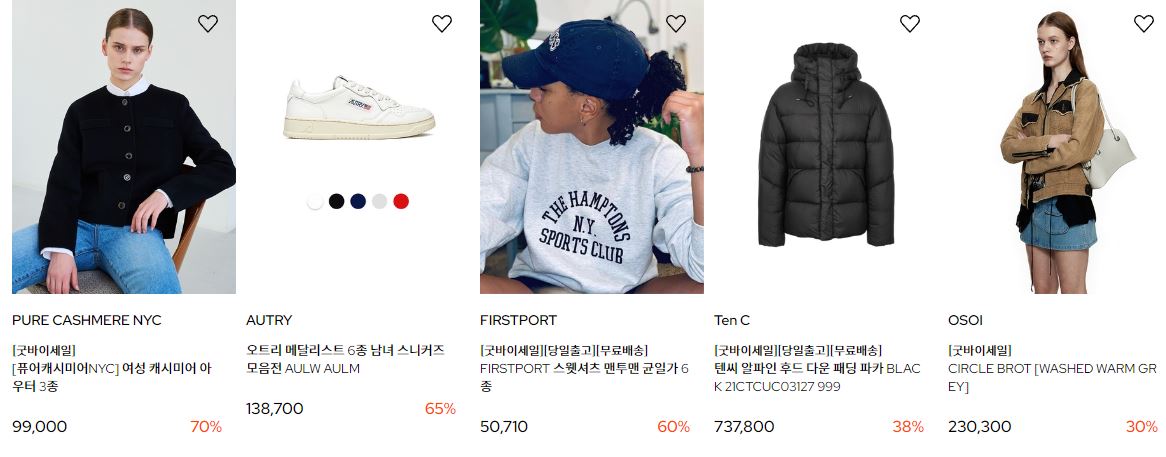 할인 품목 : 점퍼, 티셔츠, 신발, 가방 등