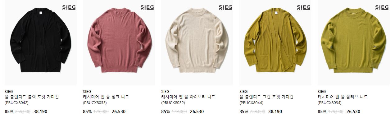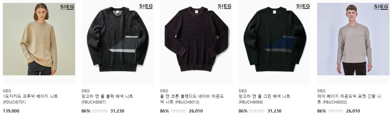 할인 품목 : 코트, 니트, 팬츠 등