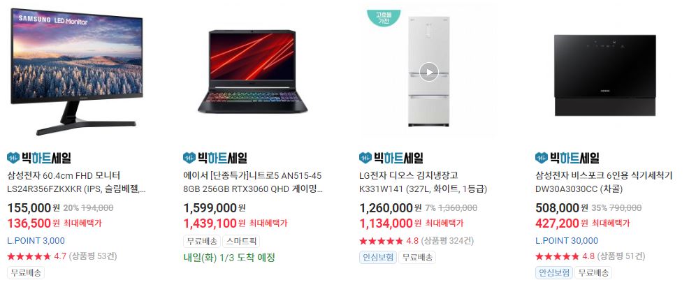 할인 품목 : 노트북, 모니터, 휴대폰 등