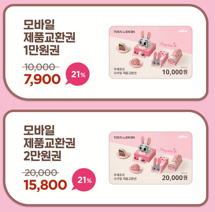 뚜레쥬르 제품교환권 21% 할인 정보 [링크]