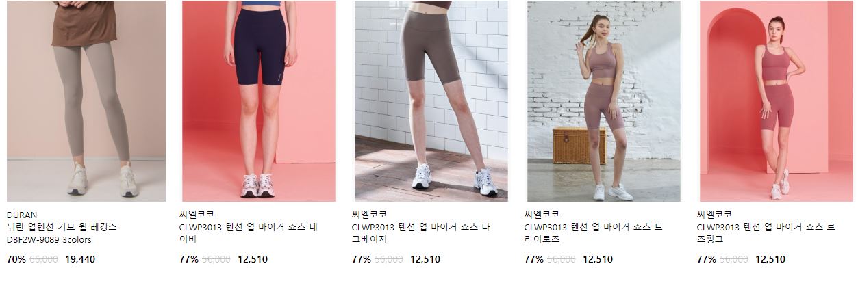 할인 품목 : 레깅스, 자켓, 티셔츠 등