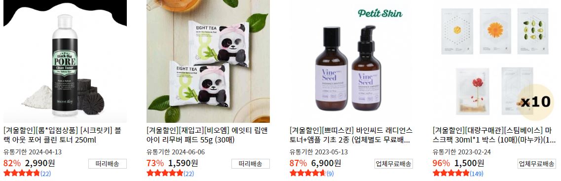 할인 품목 : 립밤, 마스크팩, 에센스 등