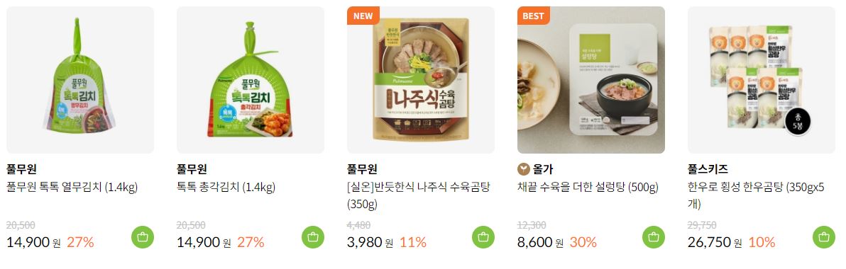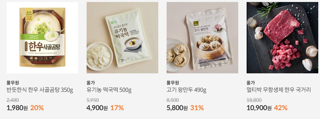 할인 품목 : 사골곰탕, 떡갈비, 김치 등