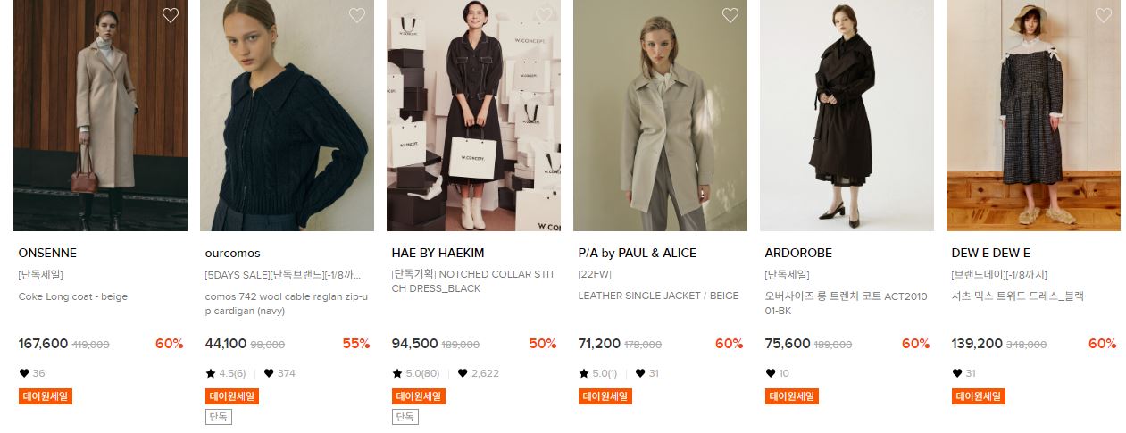 W컨셉 사이트에서 할인 이벤트를 진행하네요.