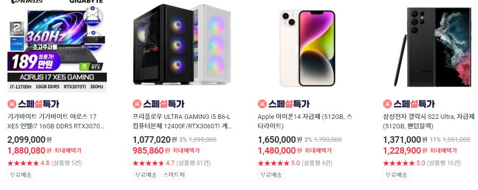 할인 품목 : 노트북, 청소기, 휴대폰 등