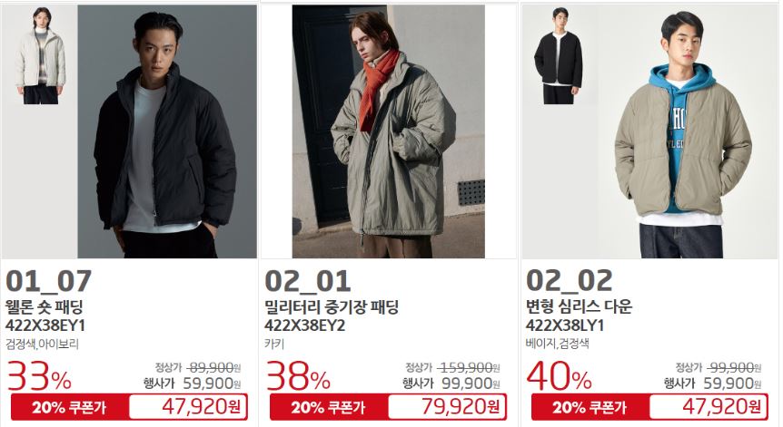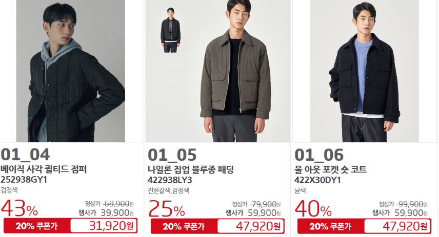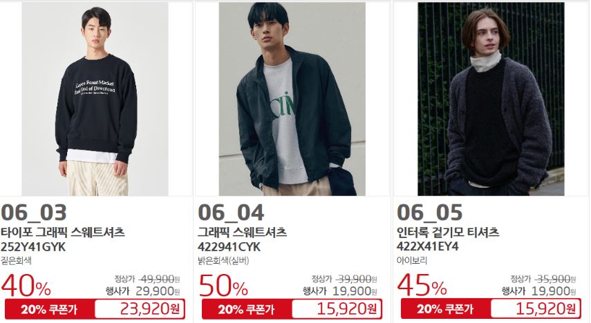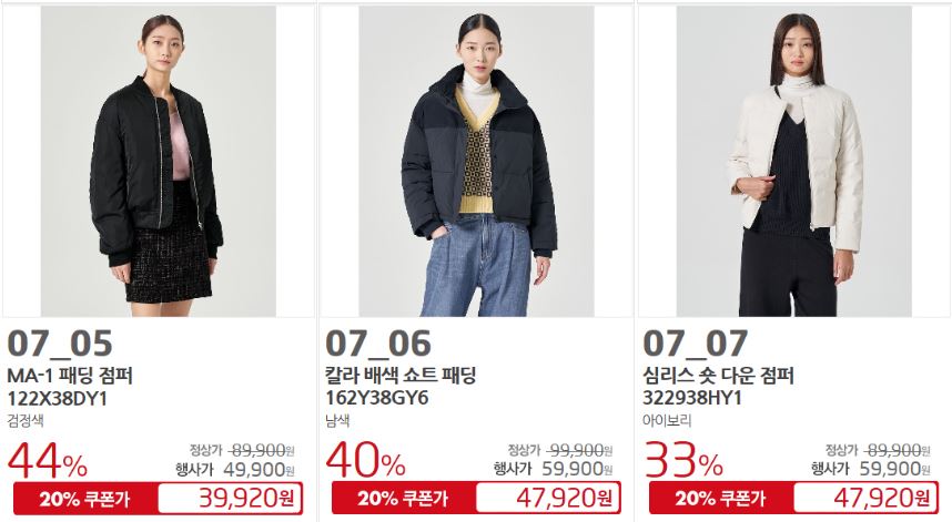 할인 품목 : 점퍼, 티셔츠, 스커트 등