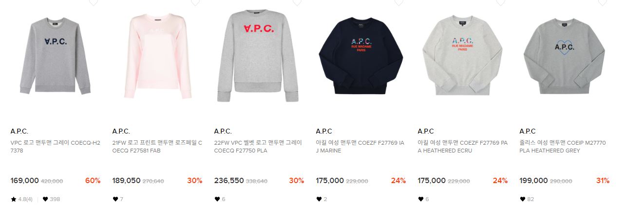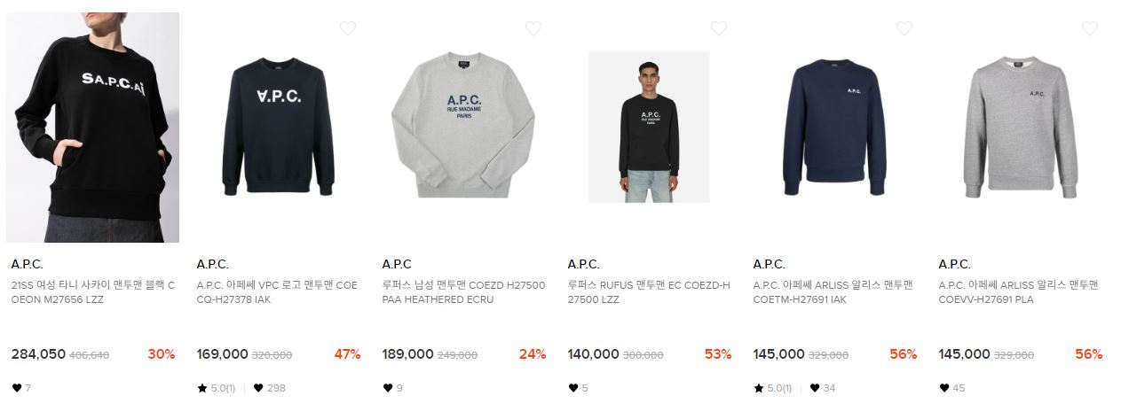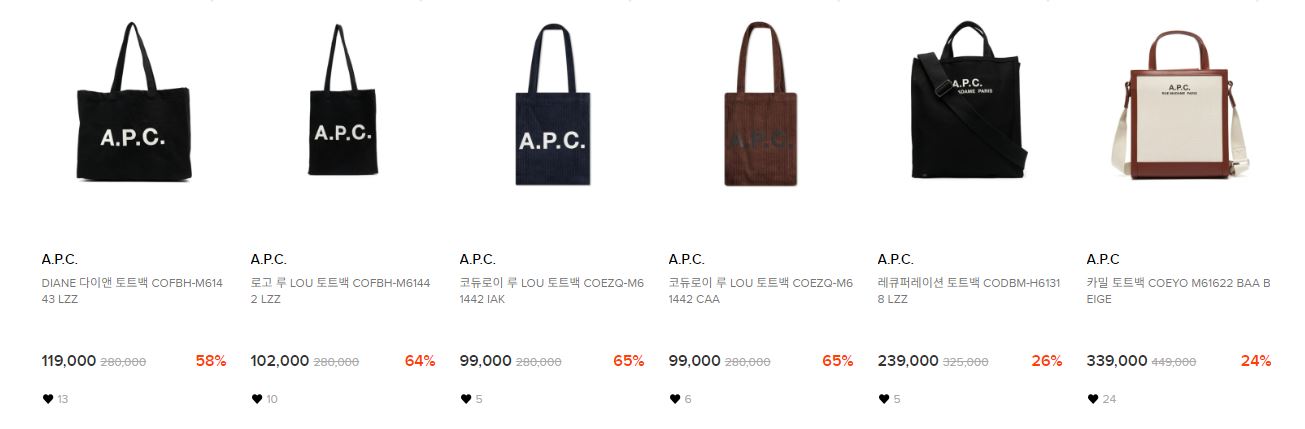 A.P.C. 다양한 제품을 할인 판매하네요.