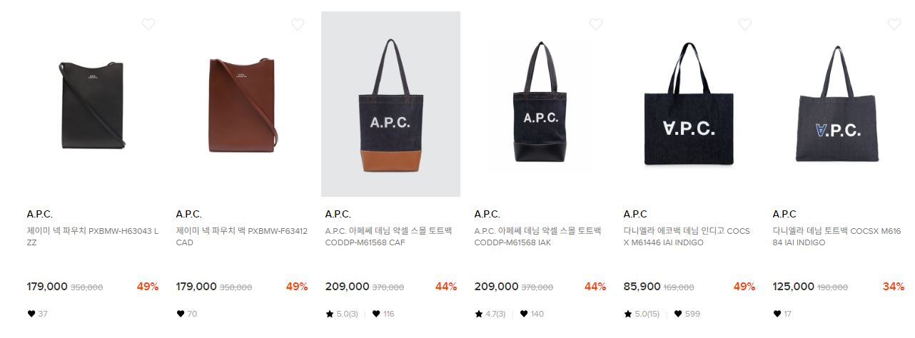 A.P.C. 다양한 제품을 할인 판매하네요.