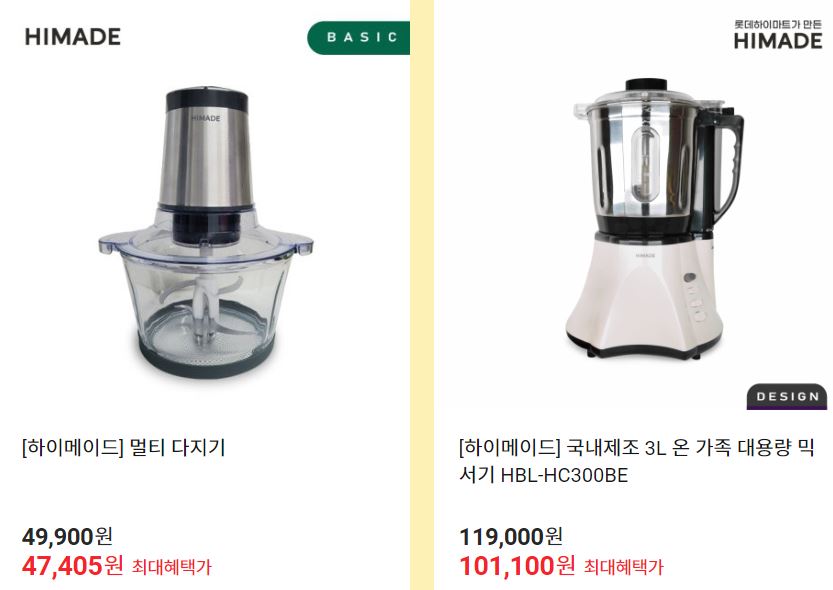 할인 품목 : 믹서기, 그릴 등