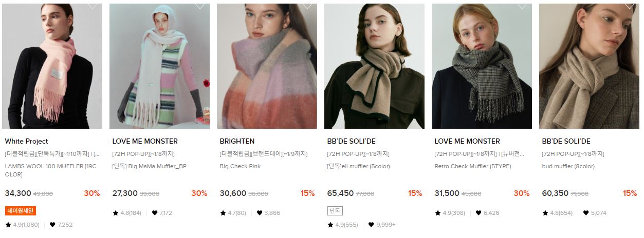 할인 품목 : 머플러, 가방, 신발 등