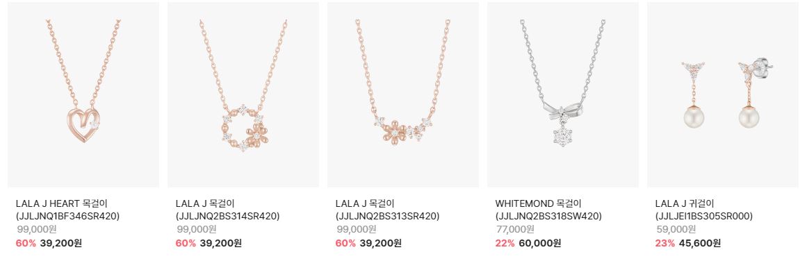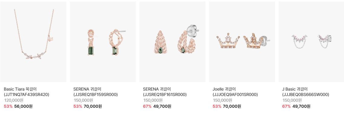 할인 품목 : 목걸이, 귀걸이, 지갑 등