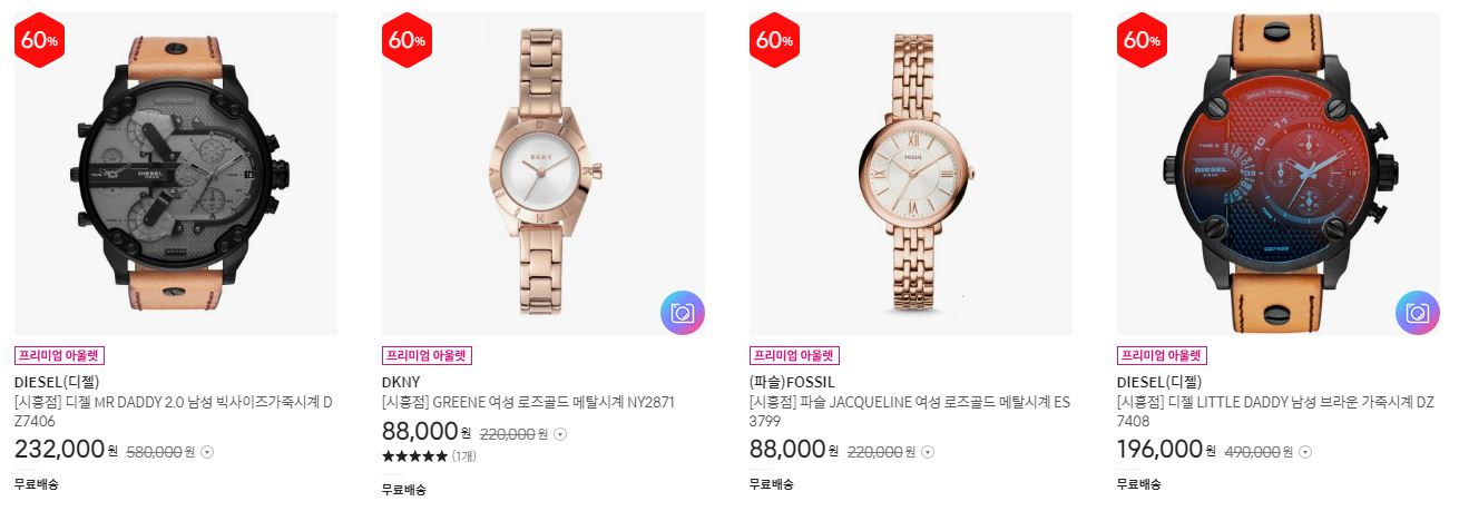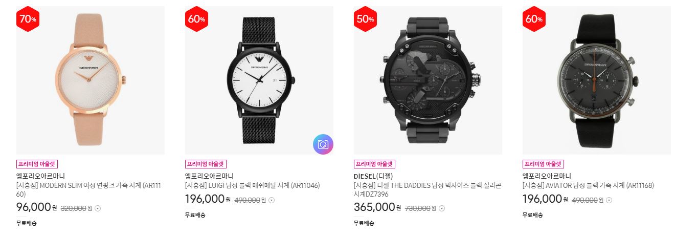 할인 품목 : 시계, 가방, 지갑 등