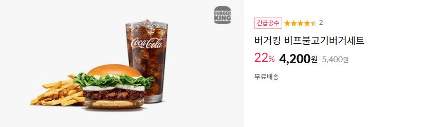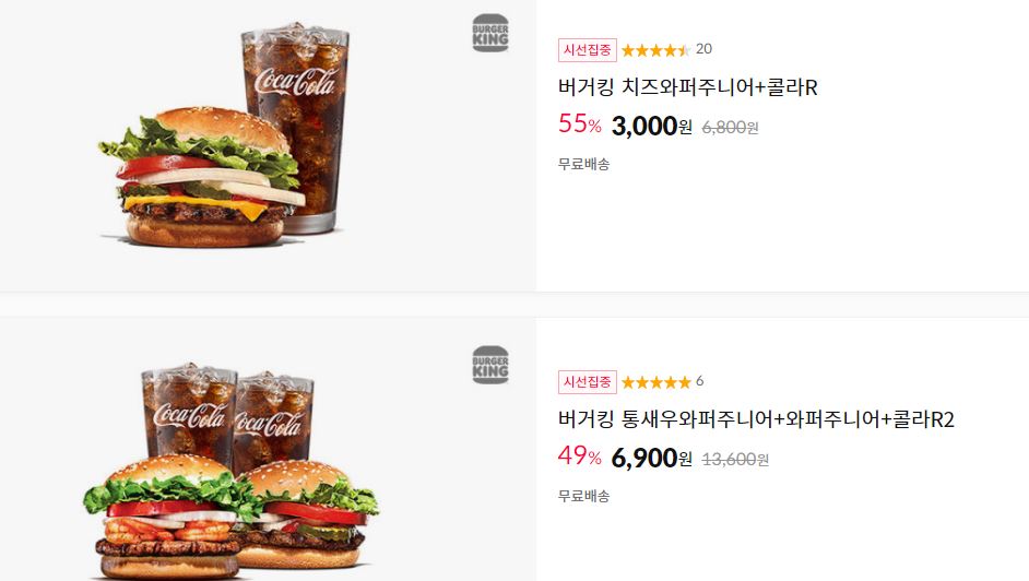 버거킹 다양한 메뉴를 할인 판매하네요.