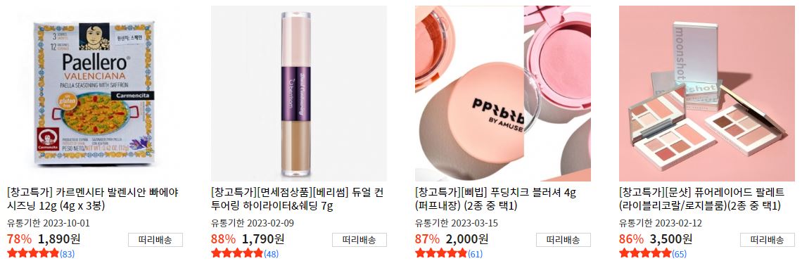 할인 품목 : 화장품, 의류, 식품 등