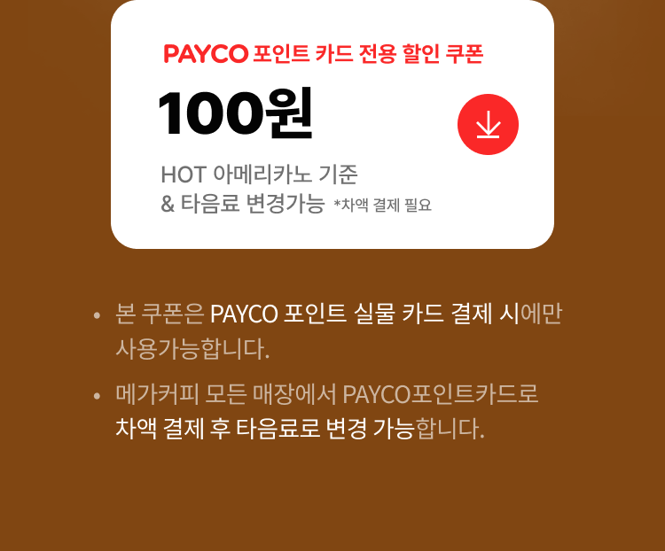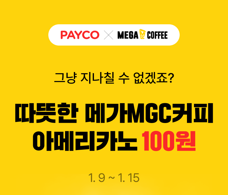 페이코 X 메가커피 아메리카노 100원 이벤트 정보 포스팅입니다.