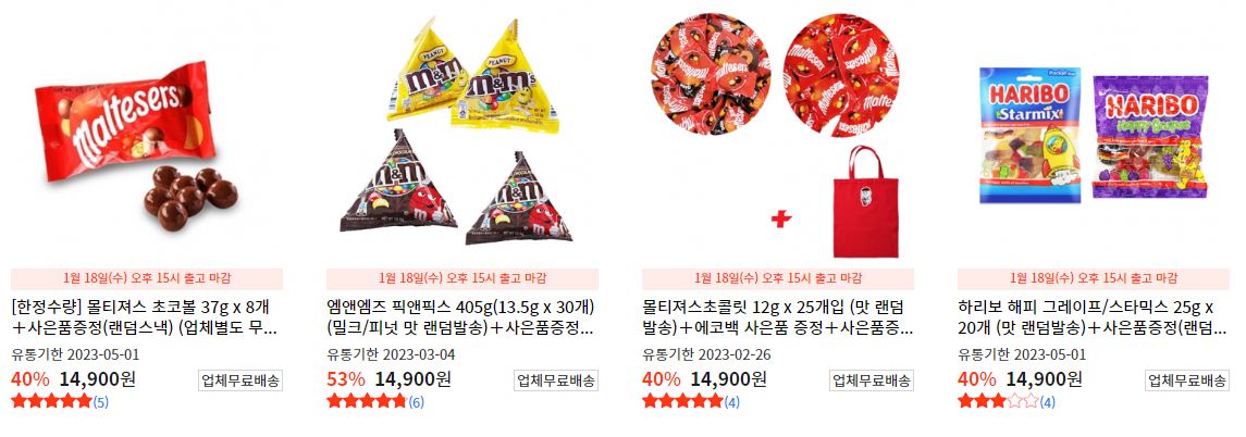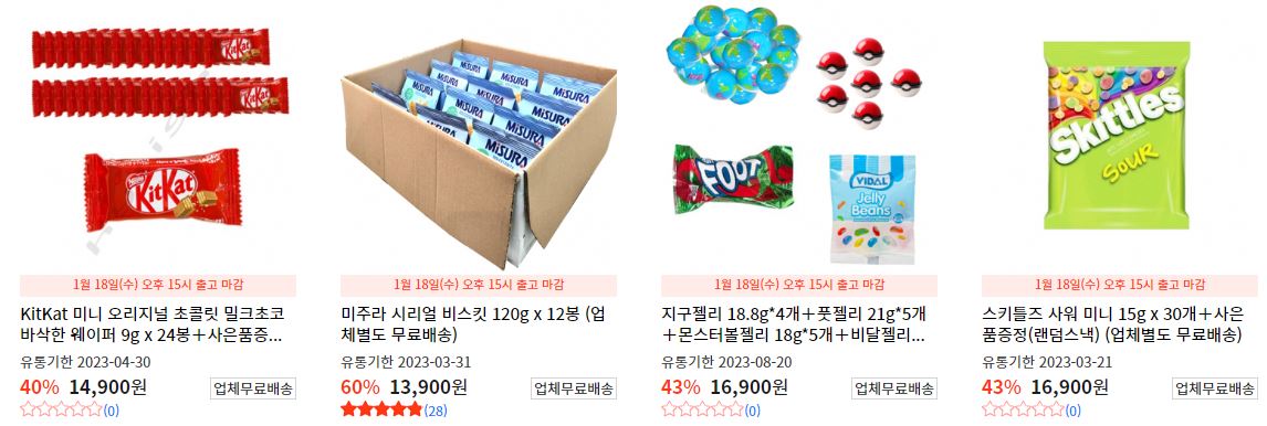 할인 품목 : 쿠키, 젤리, 초콜렛 등