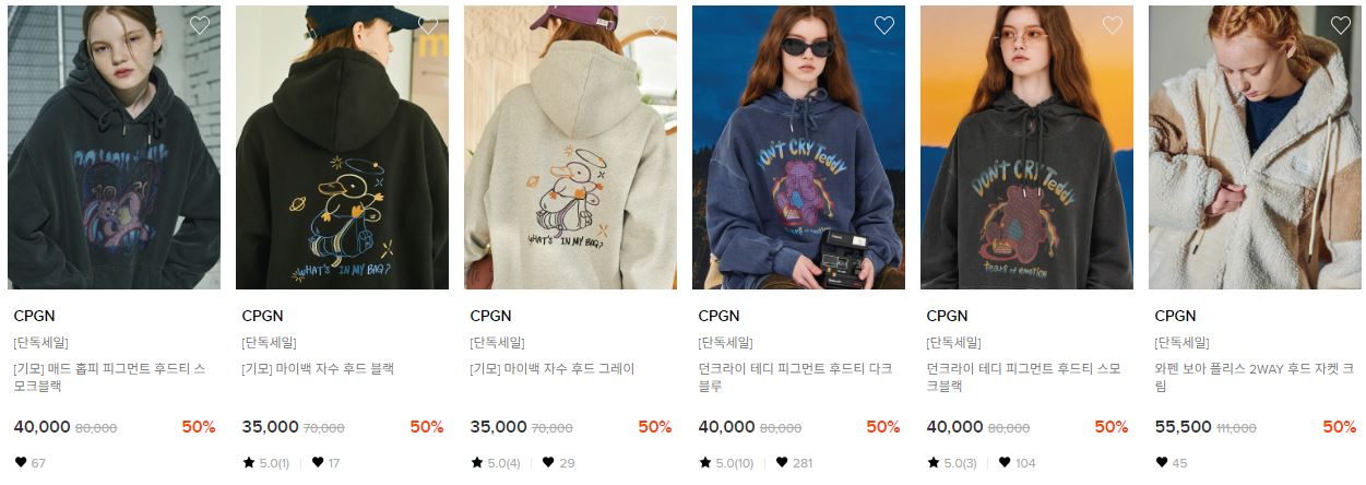 할인 품목 : 맨투맨, 후드티, 팬츠 등