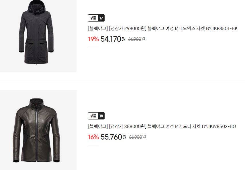 블랙야크 다양한 제품을 할인 판매하네요.