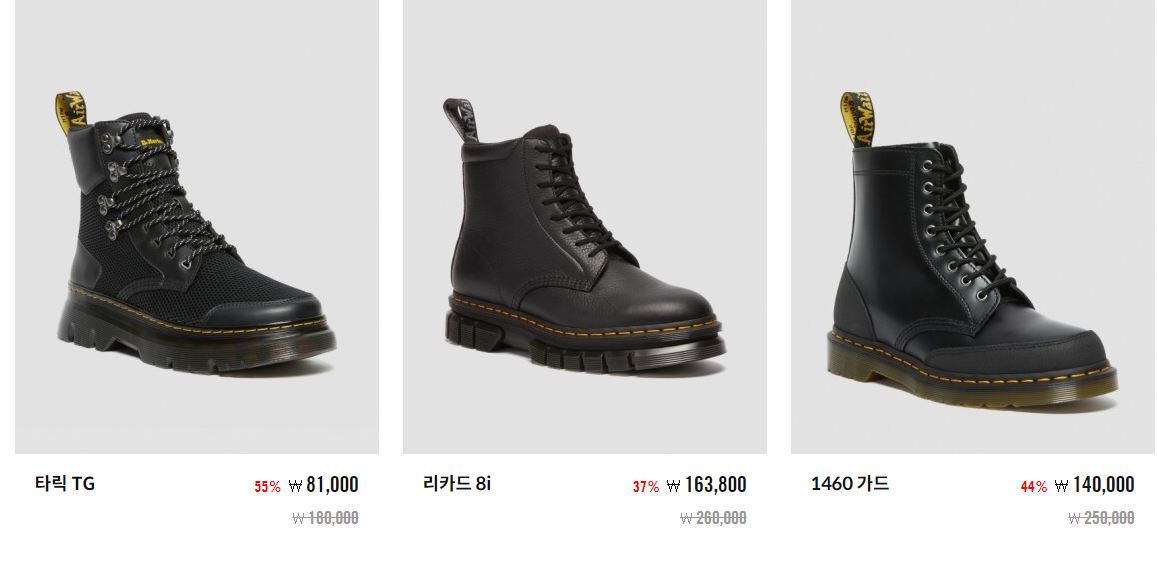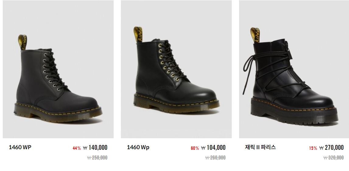 닥터마틴 다양한 제품을 할인 판매하네요.