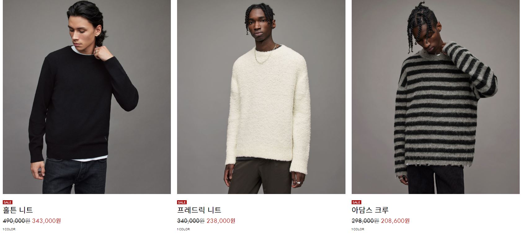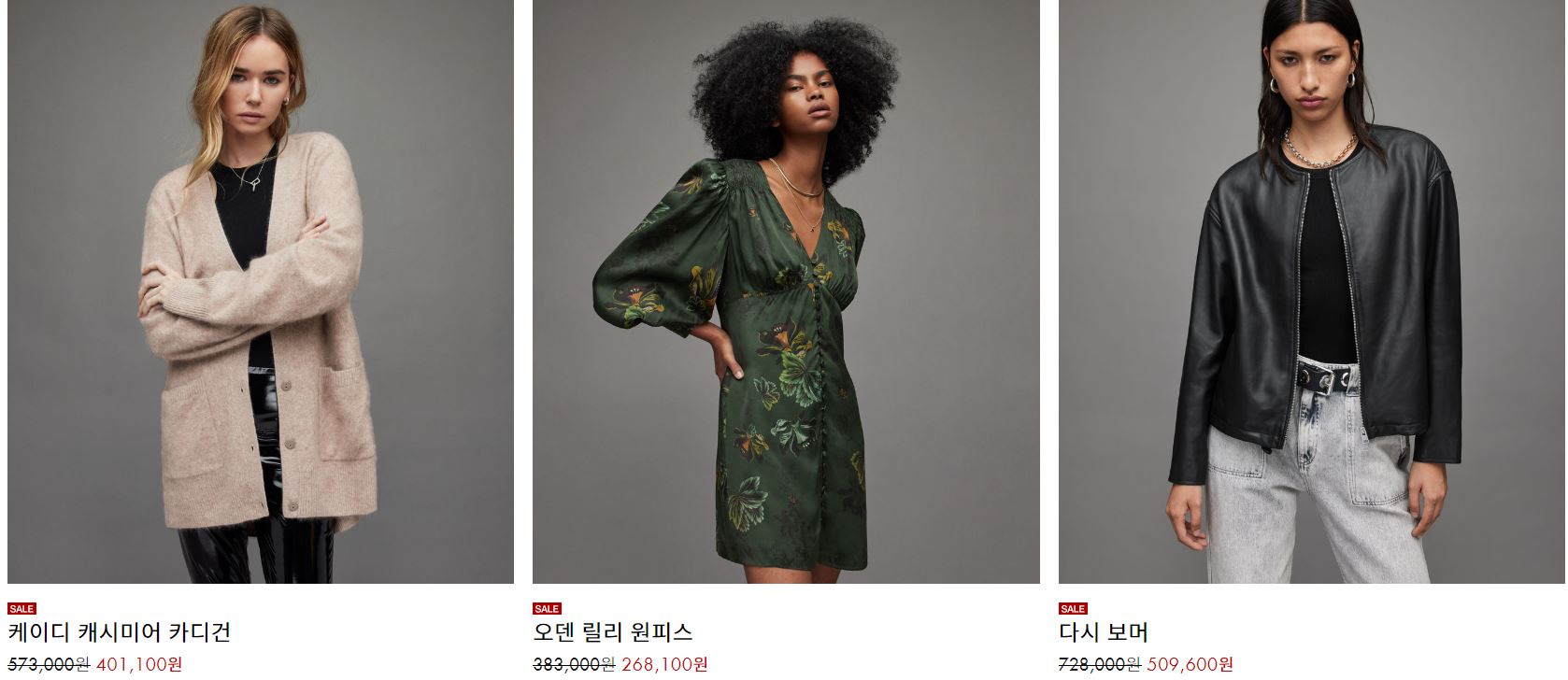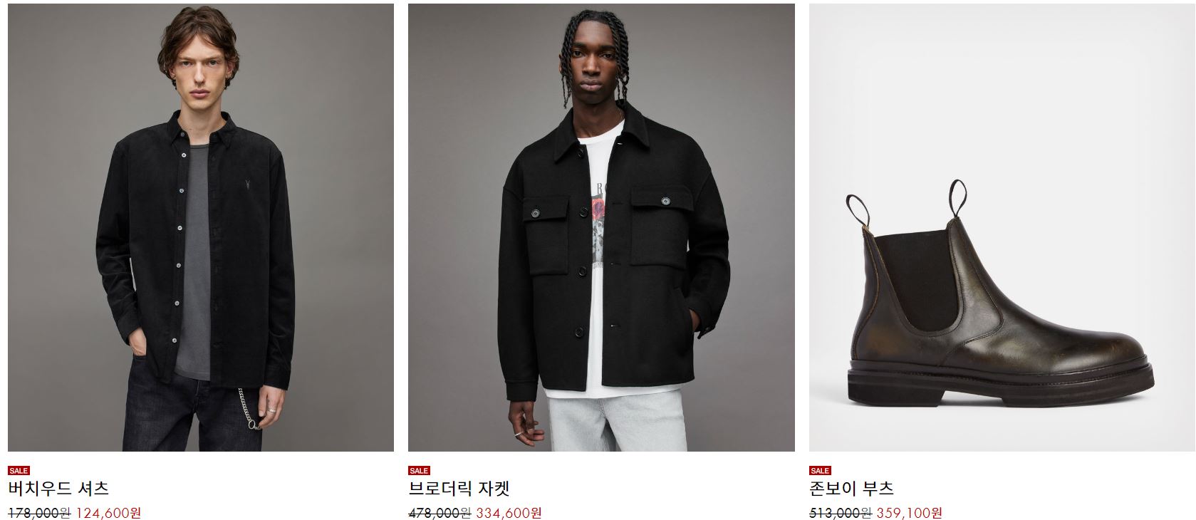 올세인츠 다양한 제품을 할인 판매하네요.