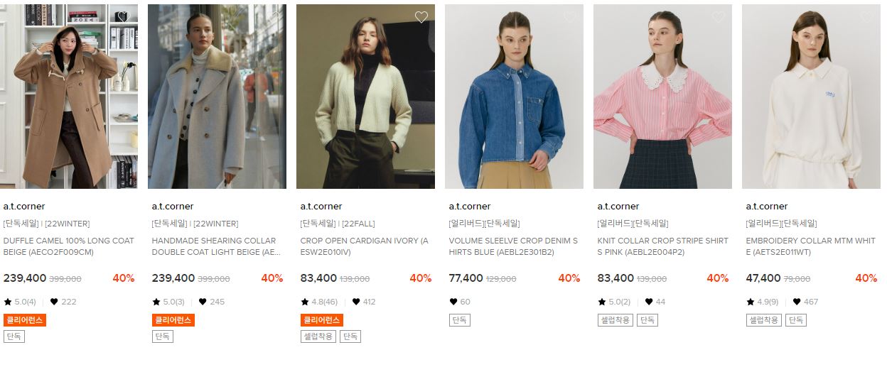 앳코너 시즌오프 최대 60% 세일 정보 [링크]