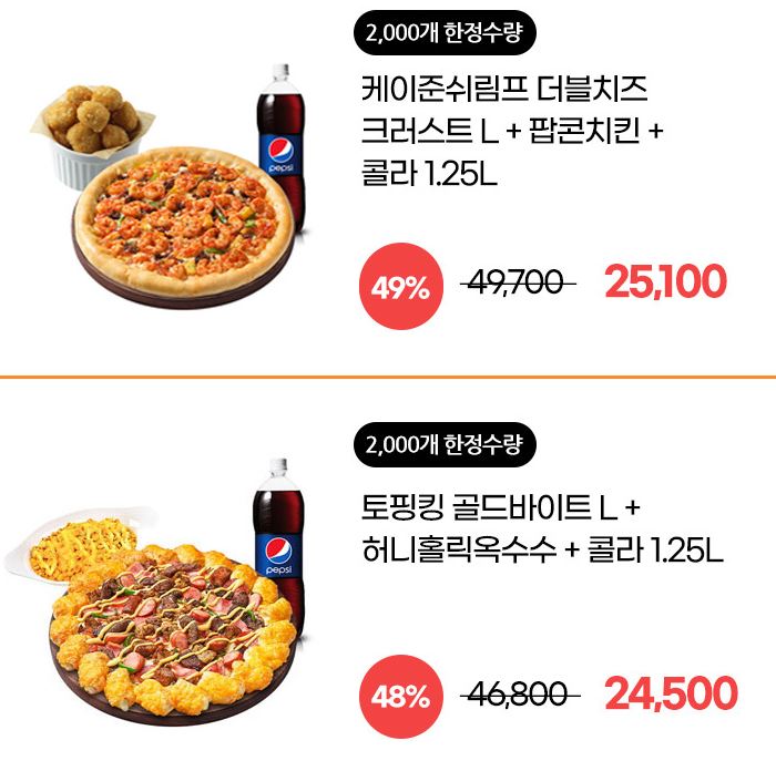 피자헛 다양한 메뉴를 할인 판매하네요.