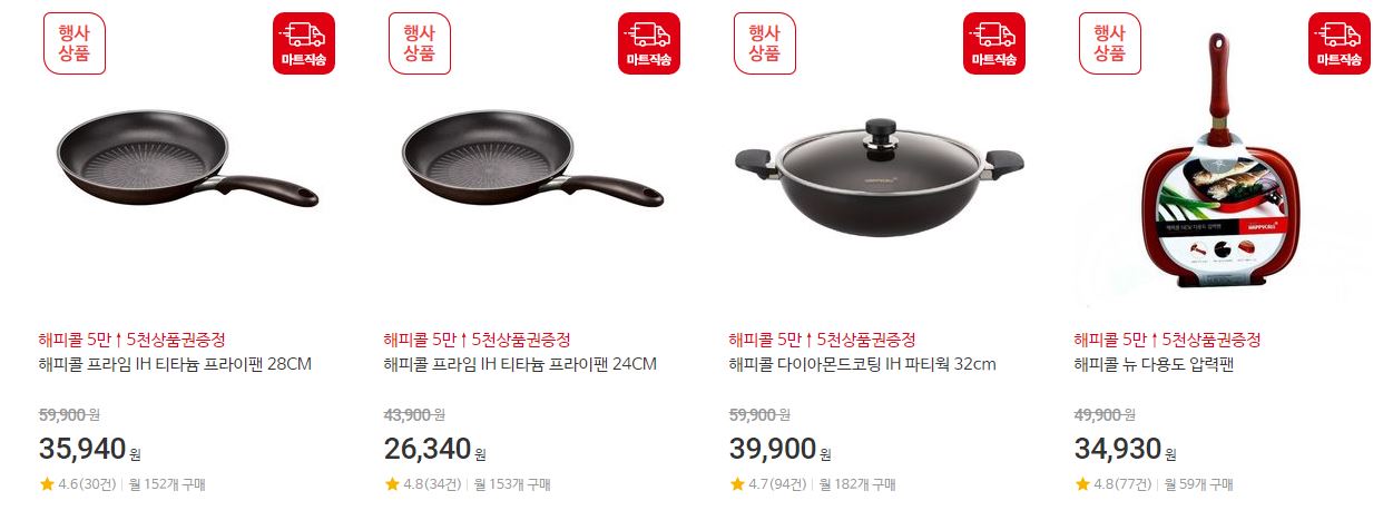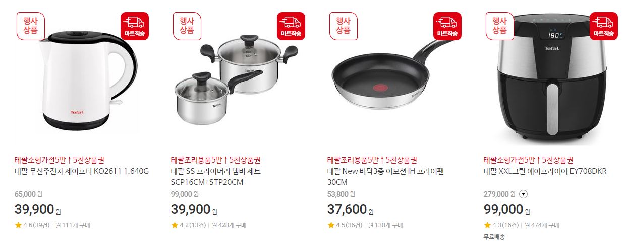 할인 품목 : 그릇, 냄비, 에어프라이어 등