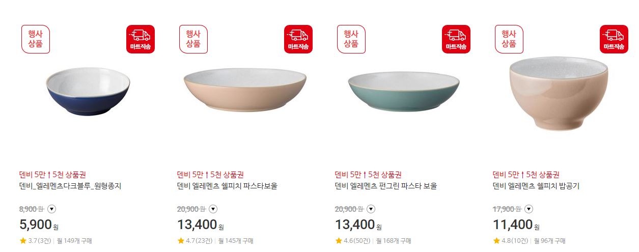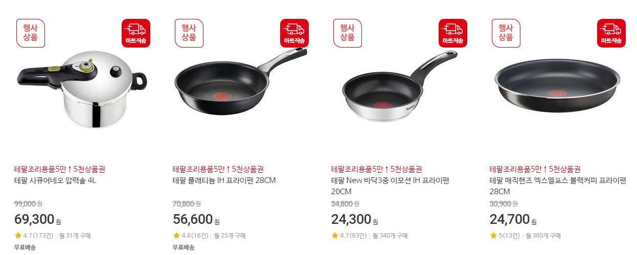 할인 품목 : 그릇, 냄비, 에어프라이어 등