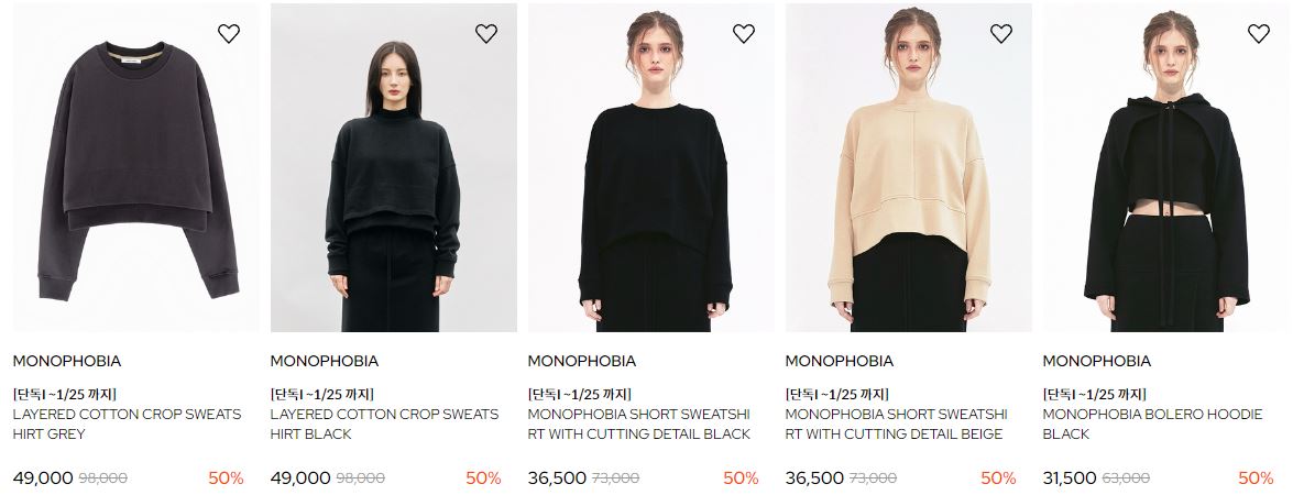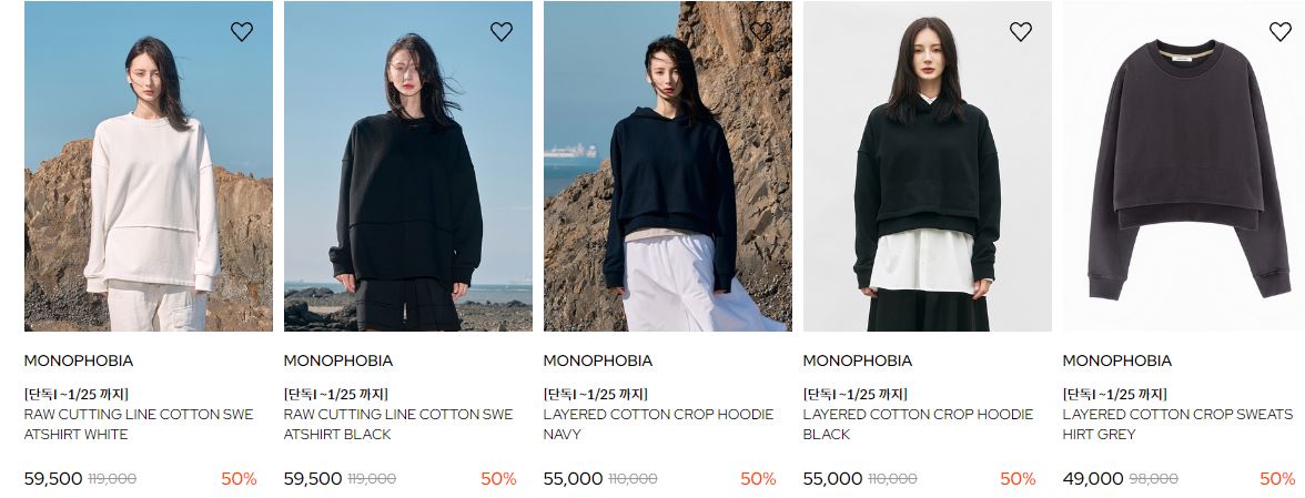 MONOPHOBIA 다양한 제품을 할인 판매하네요.