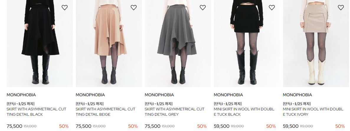 할인 품목 : 니트, 스커트 등
