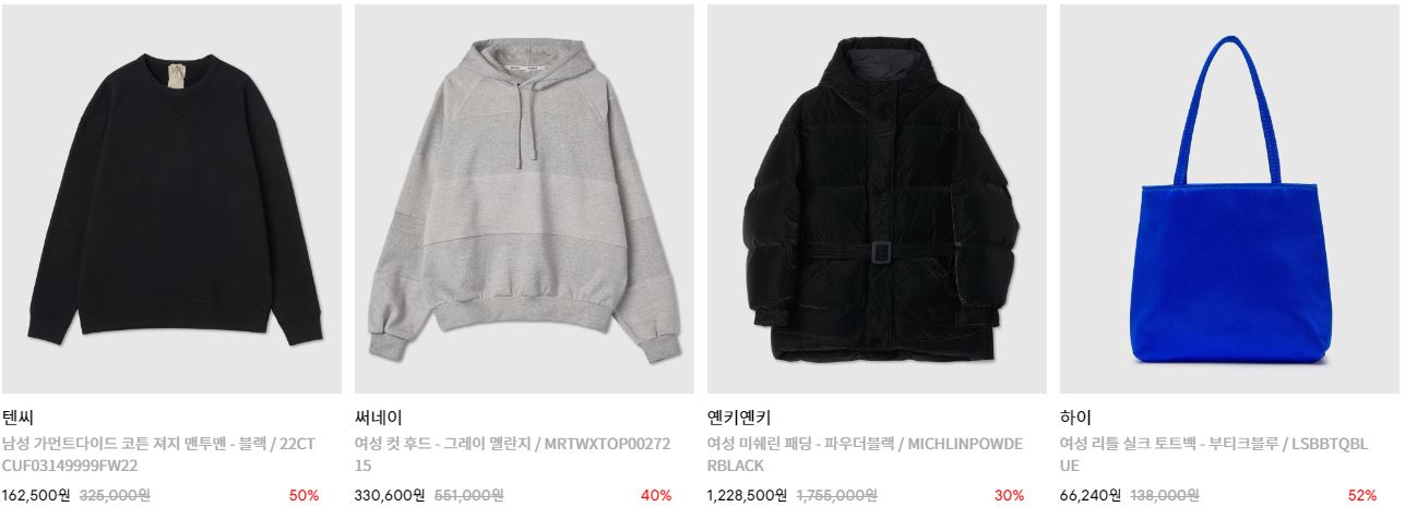 할인 품목 : 의류, 화장품, 신발 등
