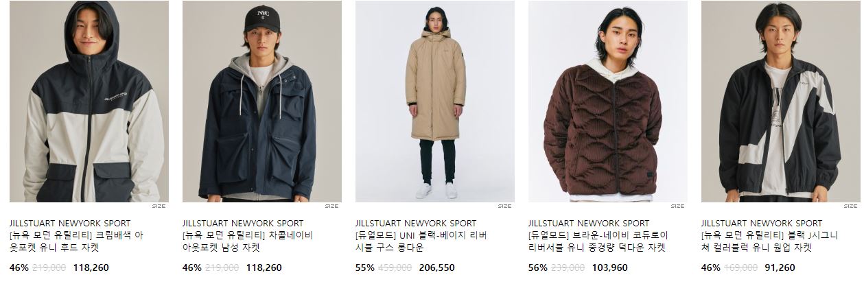 할인 품목 : 자켓, 점퍼, 티셔츠 등
