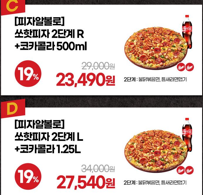 할인 메뉴 : 쏘핫피자