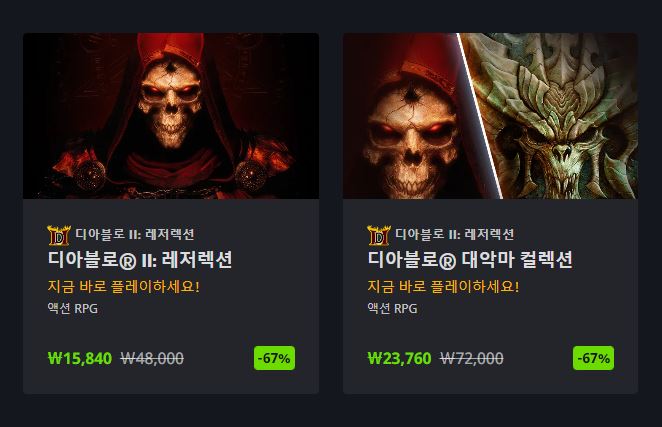 할인 품목 : 디아블로2레저렉션, 스타크래프트2 등