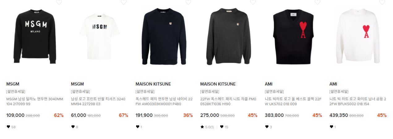 할인 품목 : 가방, 지갑, 맨투맨 등