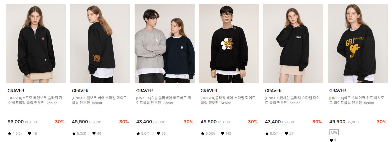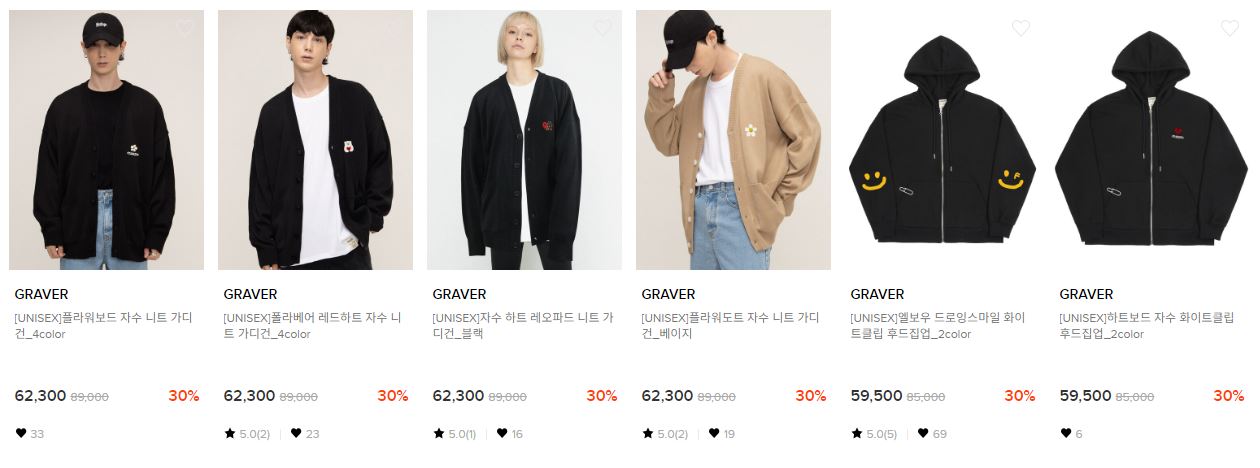 할인 품목 : 맨투맨, 가디건, 후드티 등