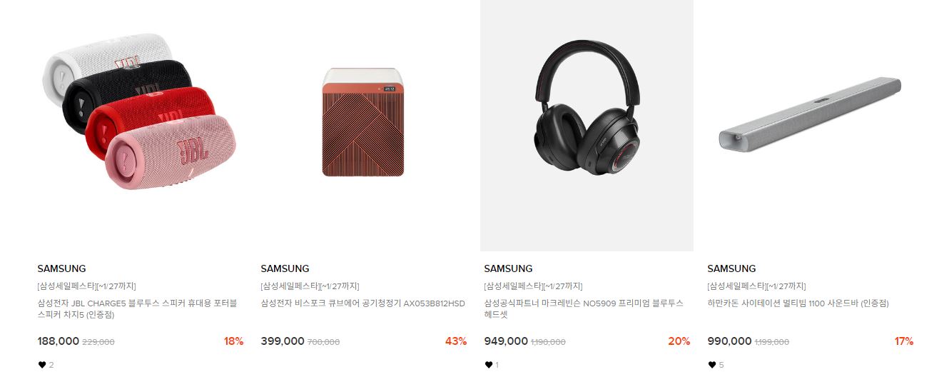 할인 품목 : 냉장고, 스피커, 스마트워치 등