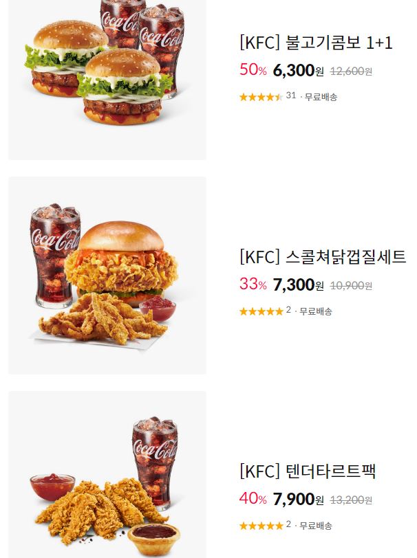 할인 메뉴 : 불고기콤보, 텐더타르트팩 등