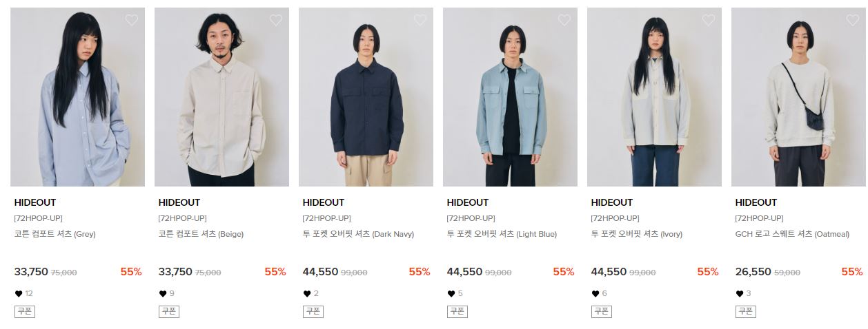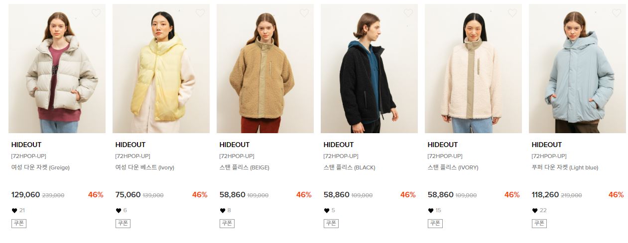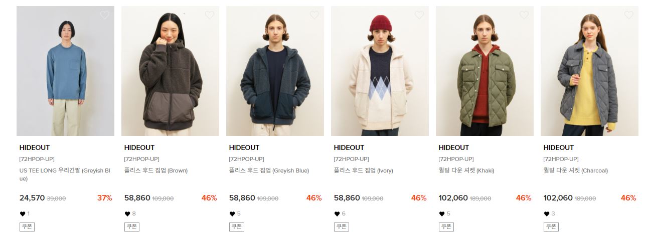 HIDEOUT 다양한 제품을 할인 판매하네요.