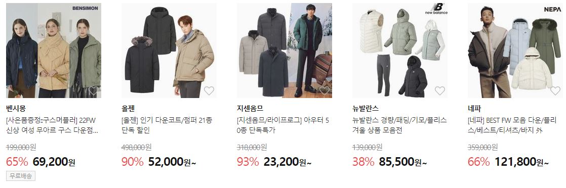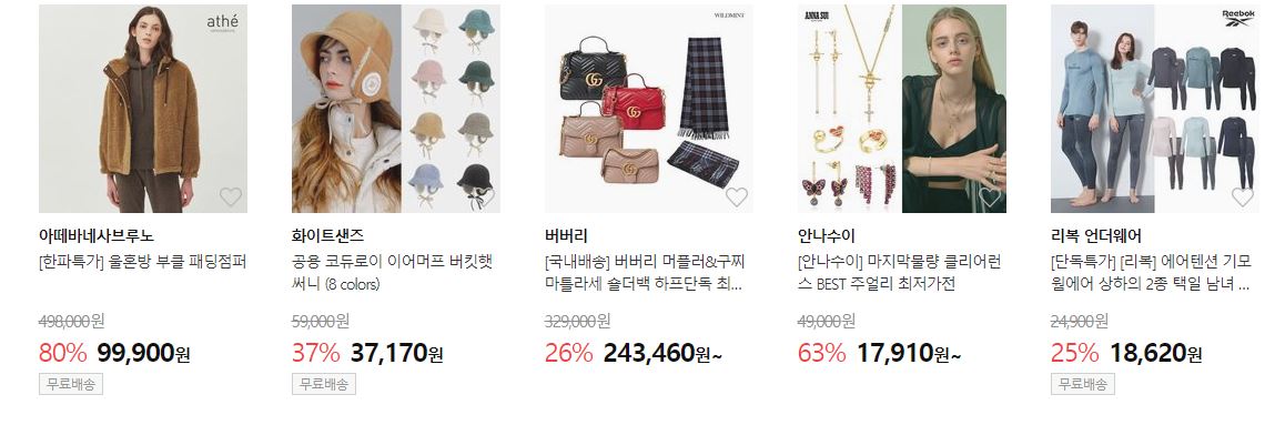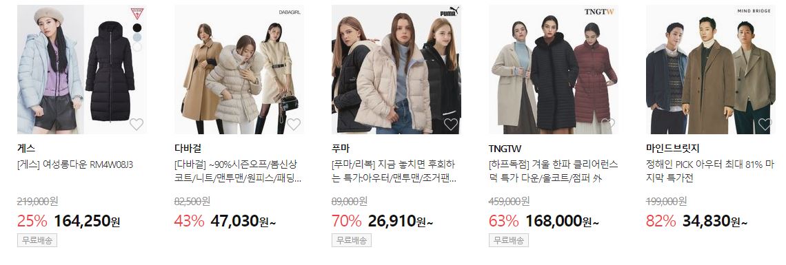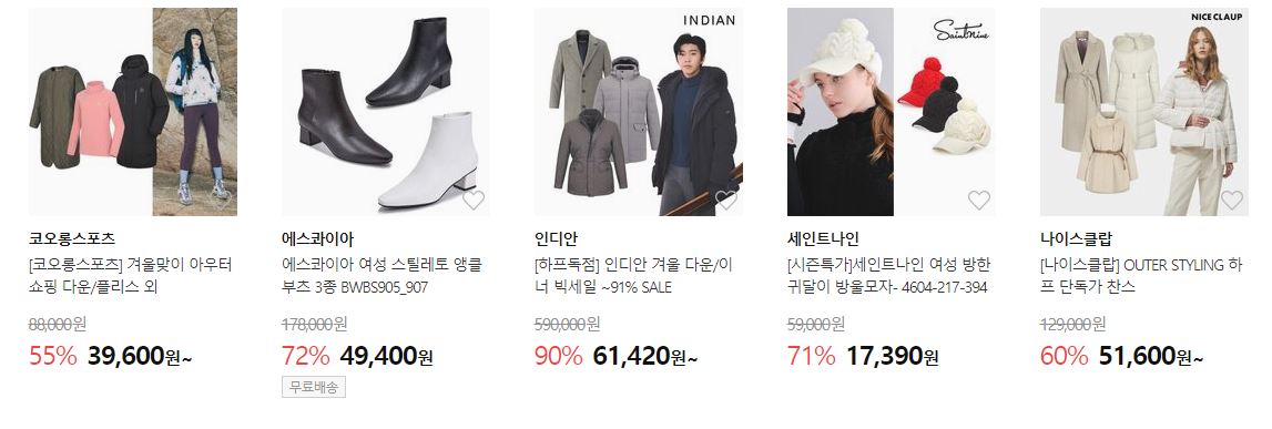 할인 품목 : 의류, 신발, 가방 등