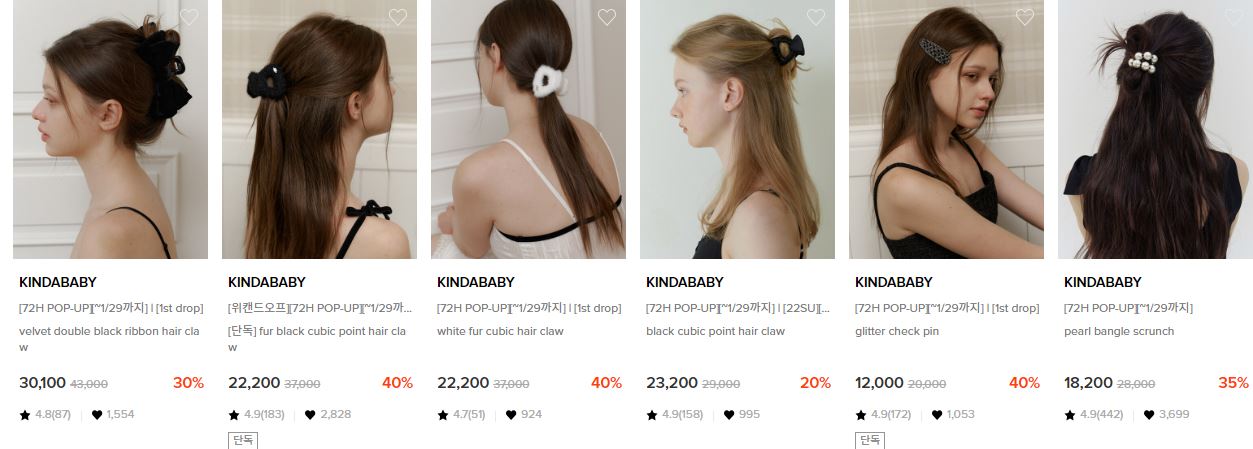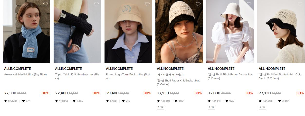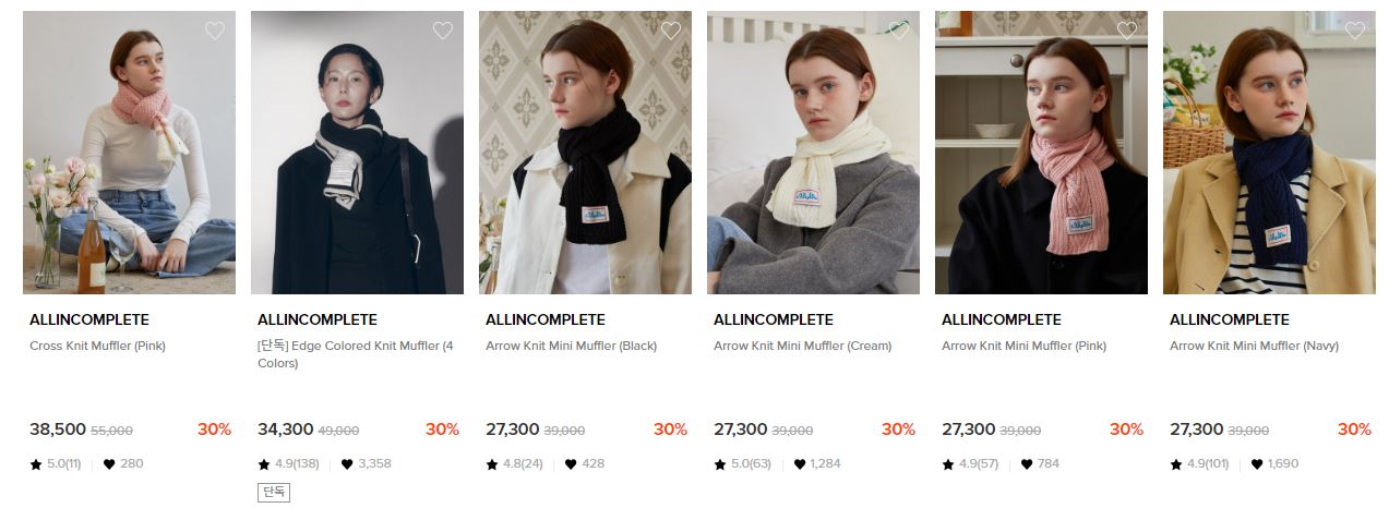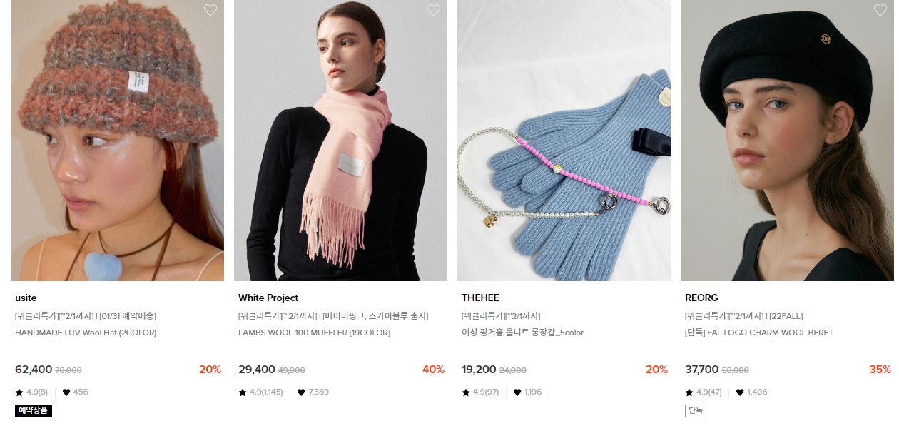할인 품목 : 헤어밴드, 머플러, 귀걸이 등