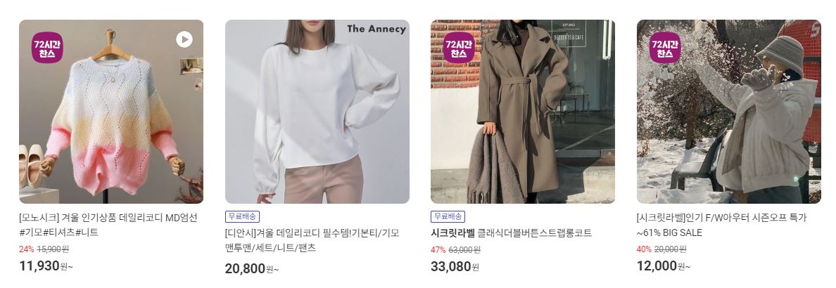 할인 품목 : 의류, 가전, 화자웊ㅁ 등