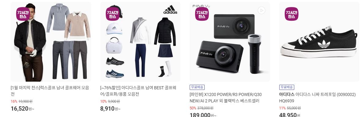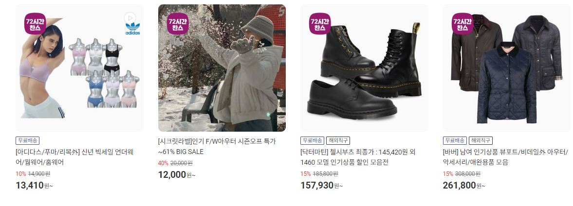 할인 품목 : 의류, 가전, 화자웊ㅁ 등