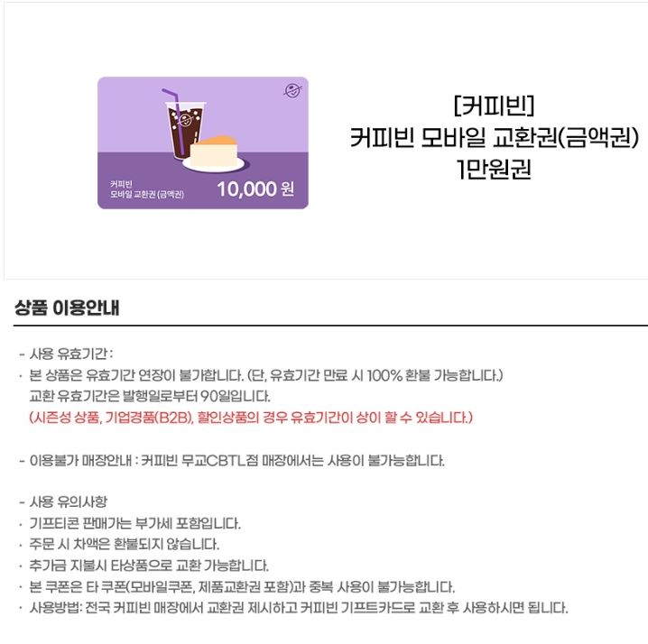 커피빈 금액권 1만원권 13% 할인 정보 포스팅입니다.