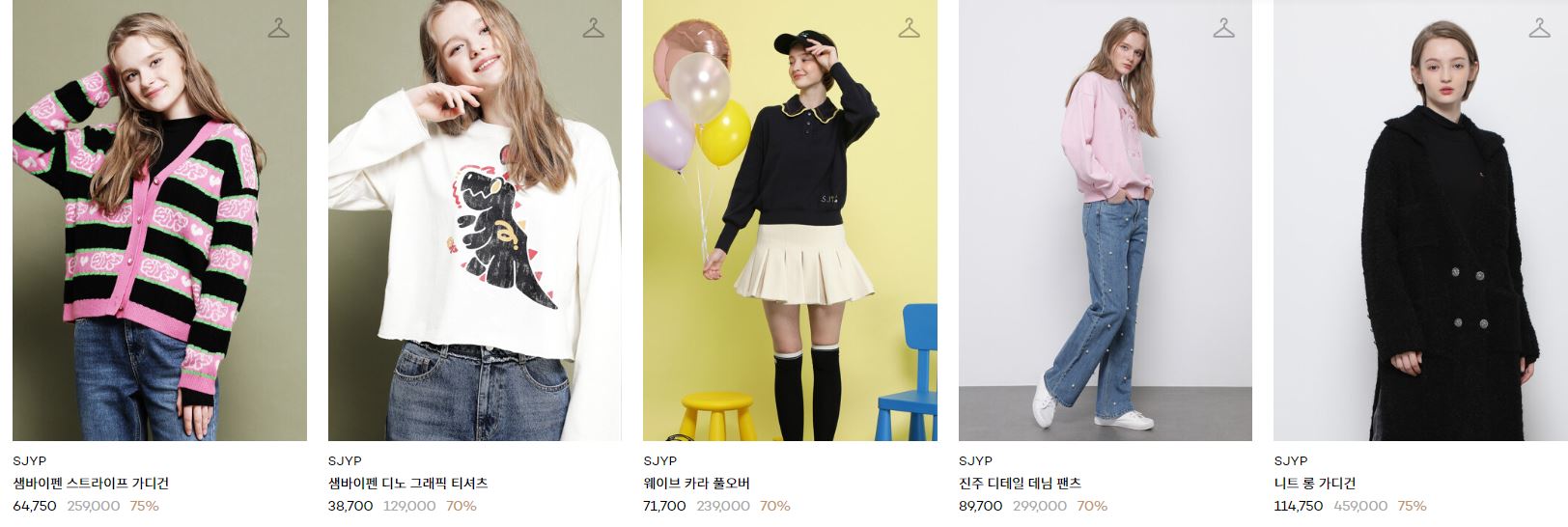 할인 품목 : 티셔츠, 팬츠, 자켓 등