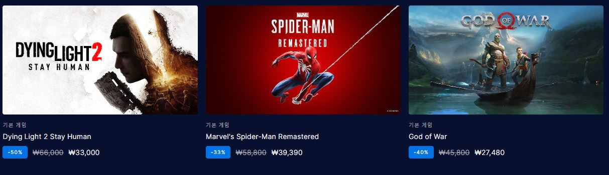 할인 게임 : 스파이더맨, 갓오브워, 사이버펑크 등