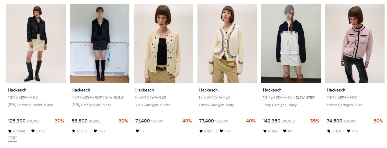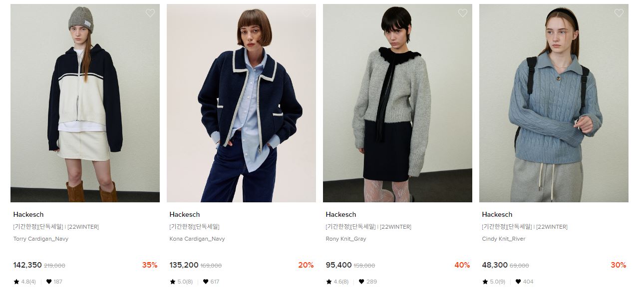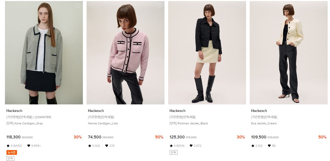 할인 품목 : 자켓, 니트 등