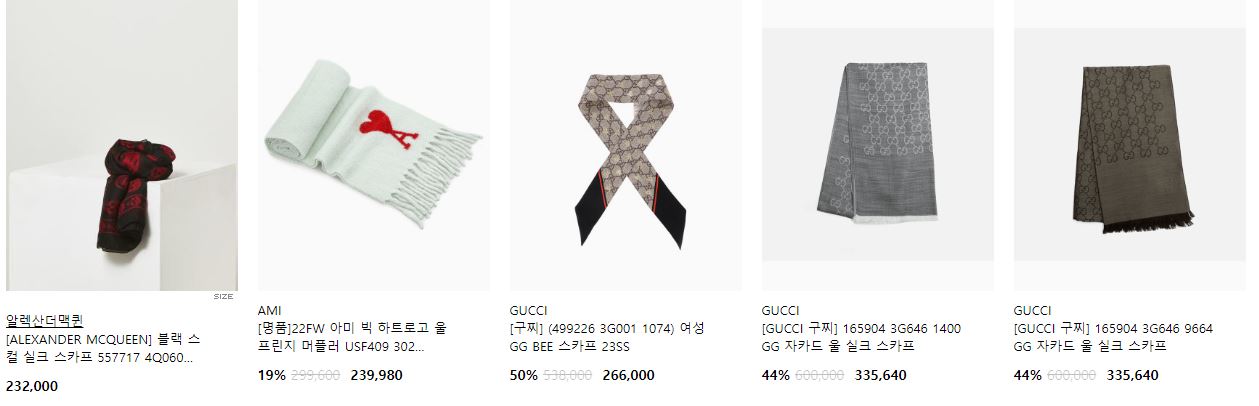 할인 품목 : 벨트, 머플러, 선글라스 등